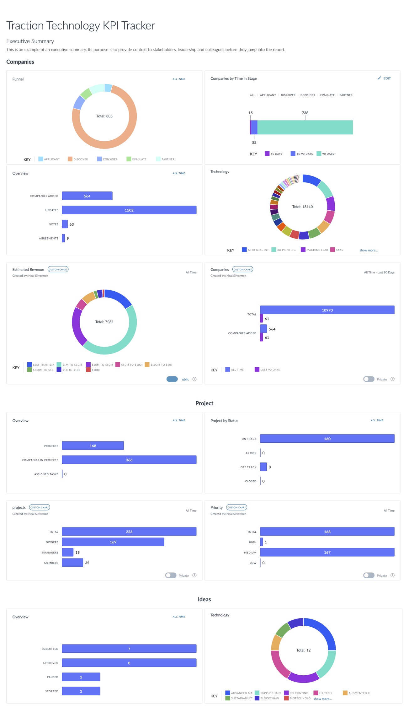 With Traction Dashbourds teams can monitor pilot performance and identify which experiments show the highest potential ROI.