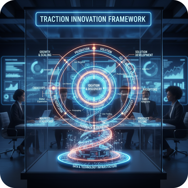 The Traction Innovation Framework reflects how real decisions get made—under uncertainty, across stakeholders, and with accountability.